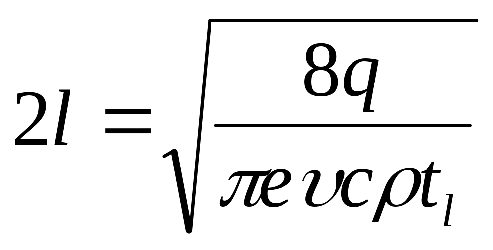 Рис. 6.4. Ширина зоны 2l ,нагревавшейся выше температуры tl