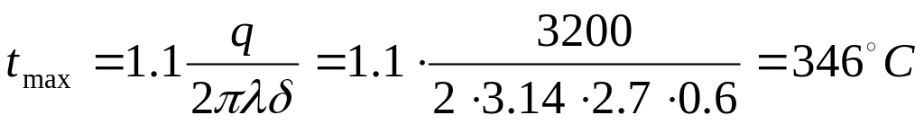 Максимальную температуру определяем по номограмме, приведенной на рисунке 6.5, б. Вычисляем безразмерный критерий