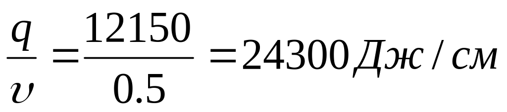 Пример 18. Автоматической аргонно-дуговой сваркой соединяют встык однопроходным швом листы δ=6 мм из сплава АМг6. Режим сварки: I=400 А. U = 16 В, η = 0,5. Скорость сварки υ = 18 м/ч = 0,5см/с.