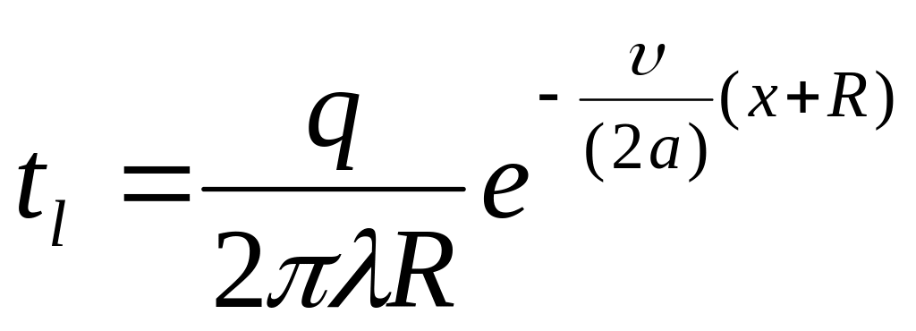 Температура t точек, расположенных на оси х (рис. 6.11), согласно уравнению (3.42) изменяется во времени: