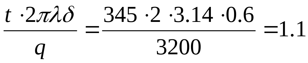 Находим эффективную мощность: q=0,8∙170∙25 =3400 Дж/с. По формуле (6.28)