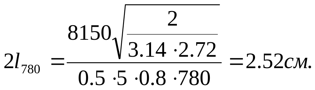 Пример 17. Листы из низколегированной закаленной стали δ = 0,8 см сваривают за один проход дуговой сваркой при токе I= 300 А, напряжении дуги U=34 В и скорости υ = 18 м/ч = 0,5 см/с, η = 0,8. Определить ширину зоны отпуска, которая находится примерно между изотермами 600 и 780 ºС. Теплоемкость стали – 5,0 Дж/(см3 ∙ град).
